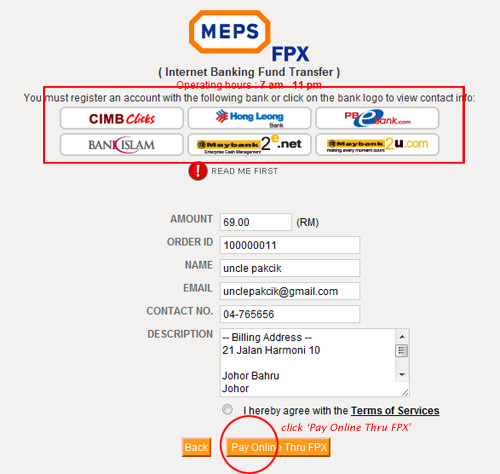 Please note the Operating Hours for MEPS (Malaysia Electronic Payment System) . For MEPS the operating hours start from 7.00 am to 11.00 pm everyday. This time period applies only for FPX transaction but not for Credit Card. DO NOT make any payment after this operating hours.