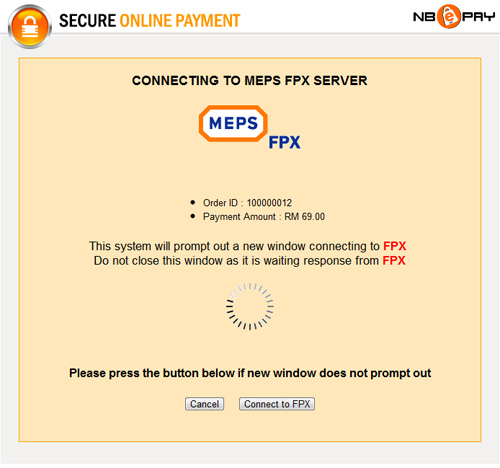 - Anda akan disambungkan ke perkhidmatan MEPS FPX.